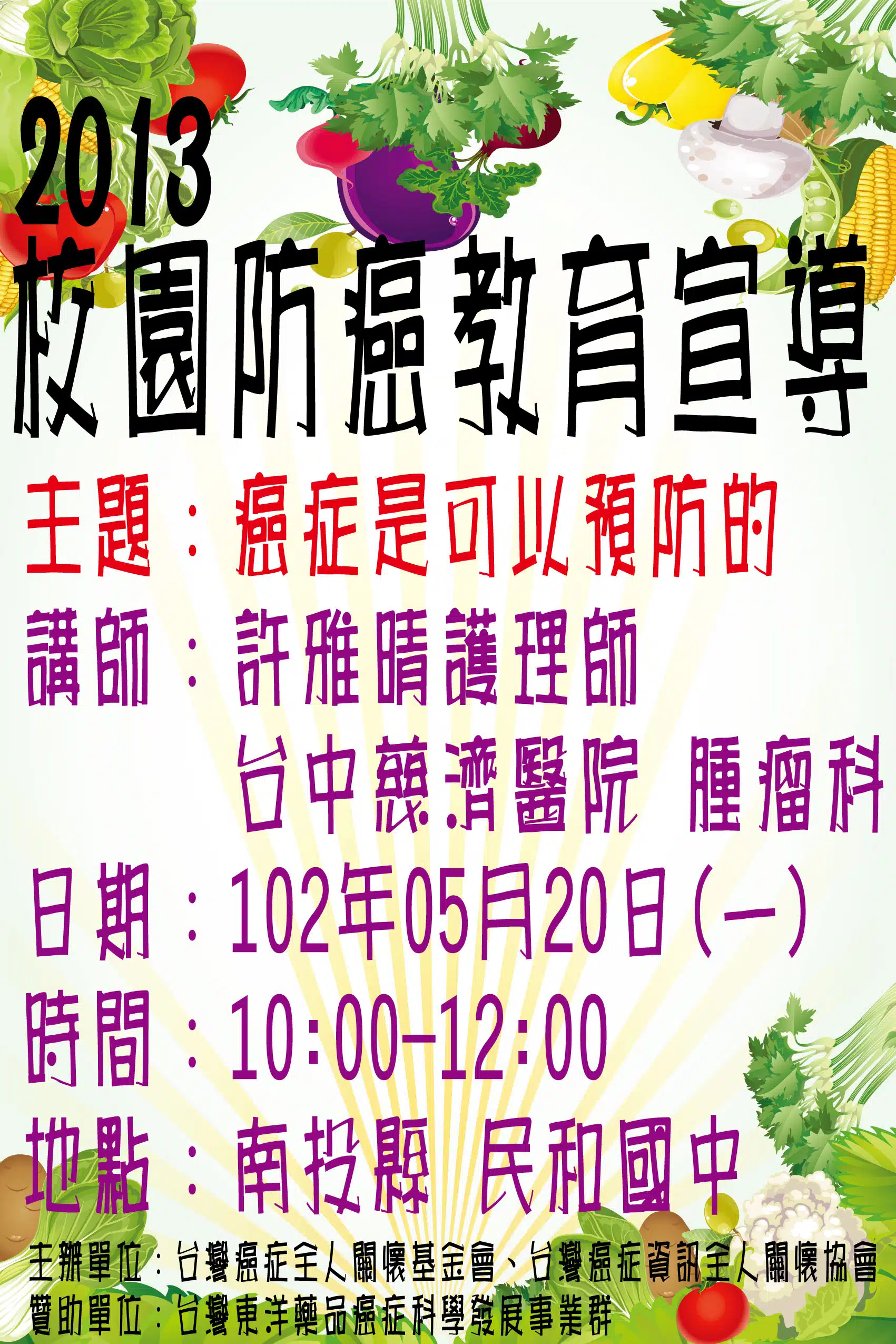 1、培育學生建立正確的癌症知識,力行健康生活。