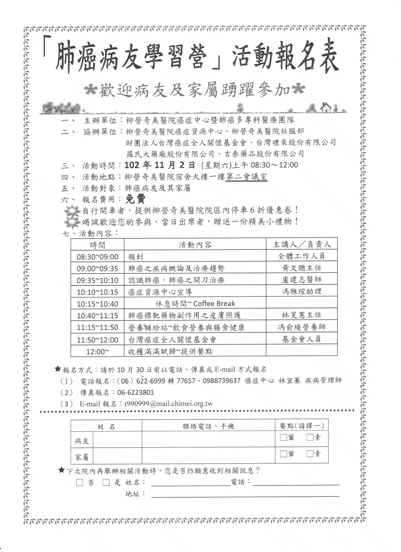 102年 柳營奇美醫院肺癌病友學習營