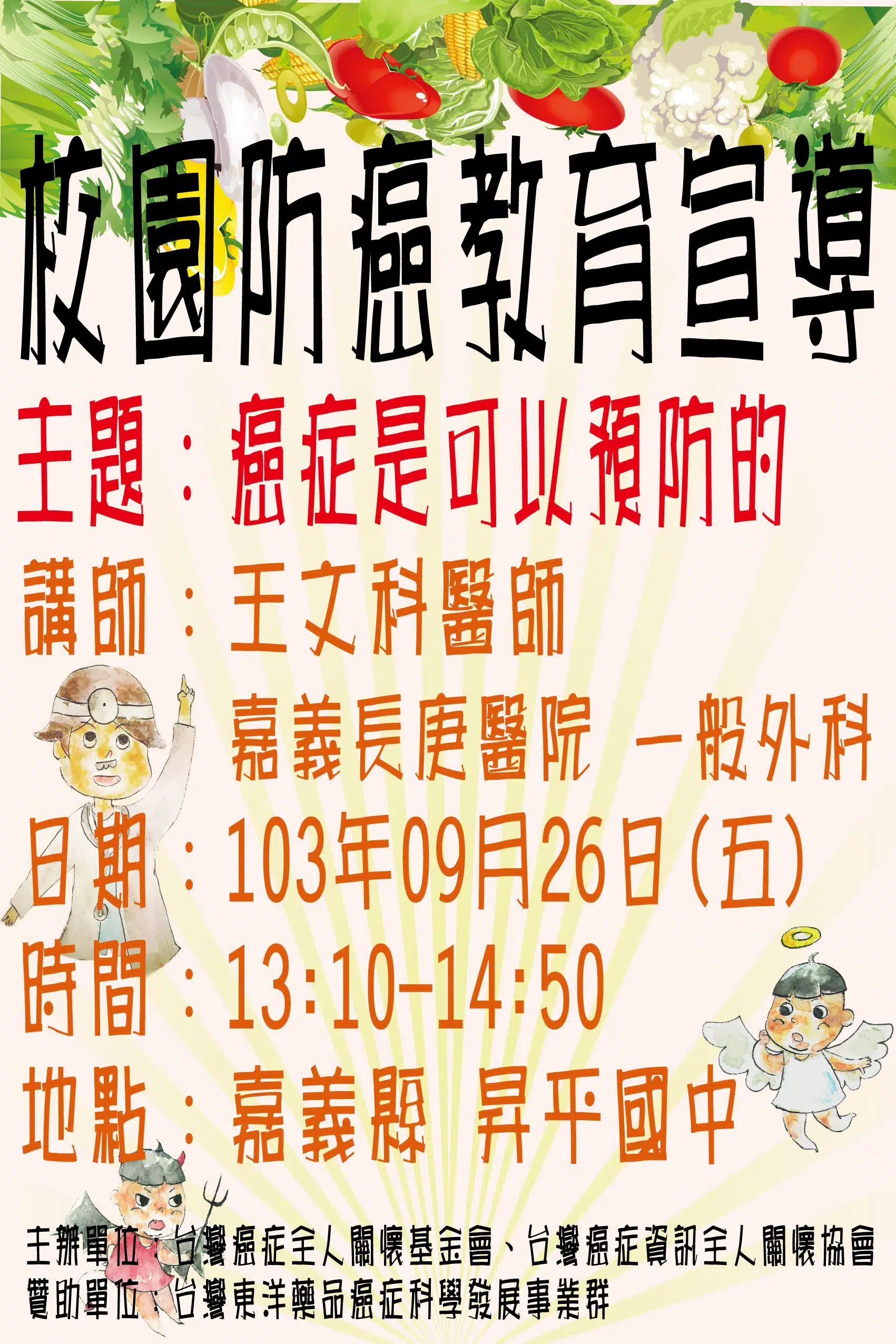 103學年度第一學期校園防癌教育宣導-嘉義縣昇平國中