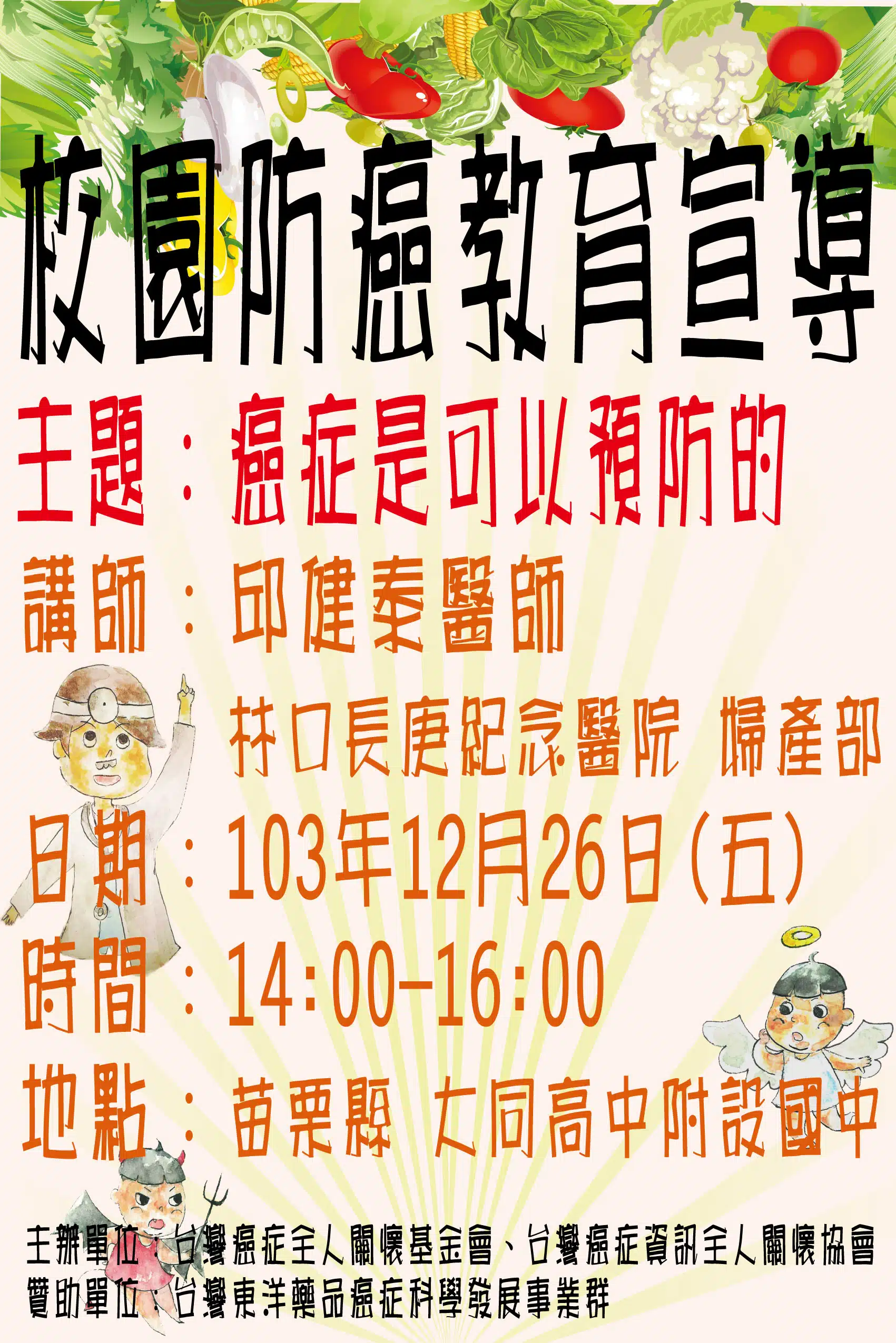 103學年度第一學期校園防癌教育宣導-苗栗縣大同高中附設國中