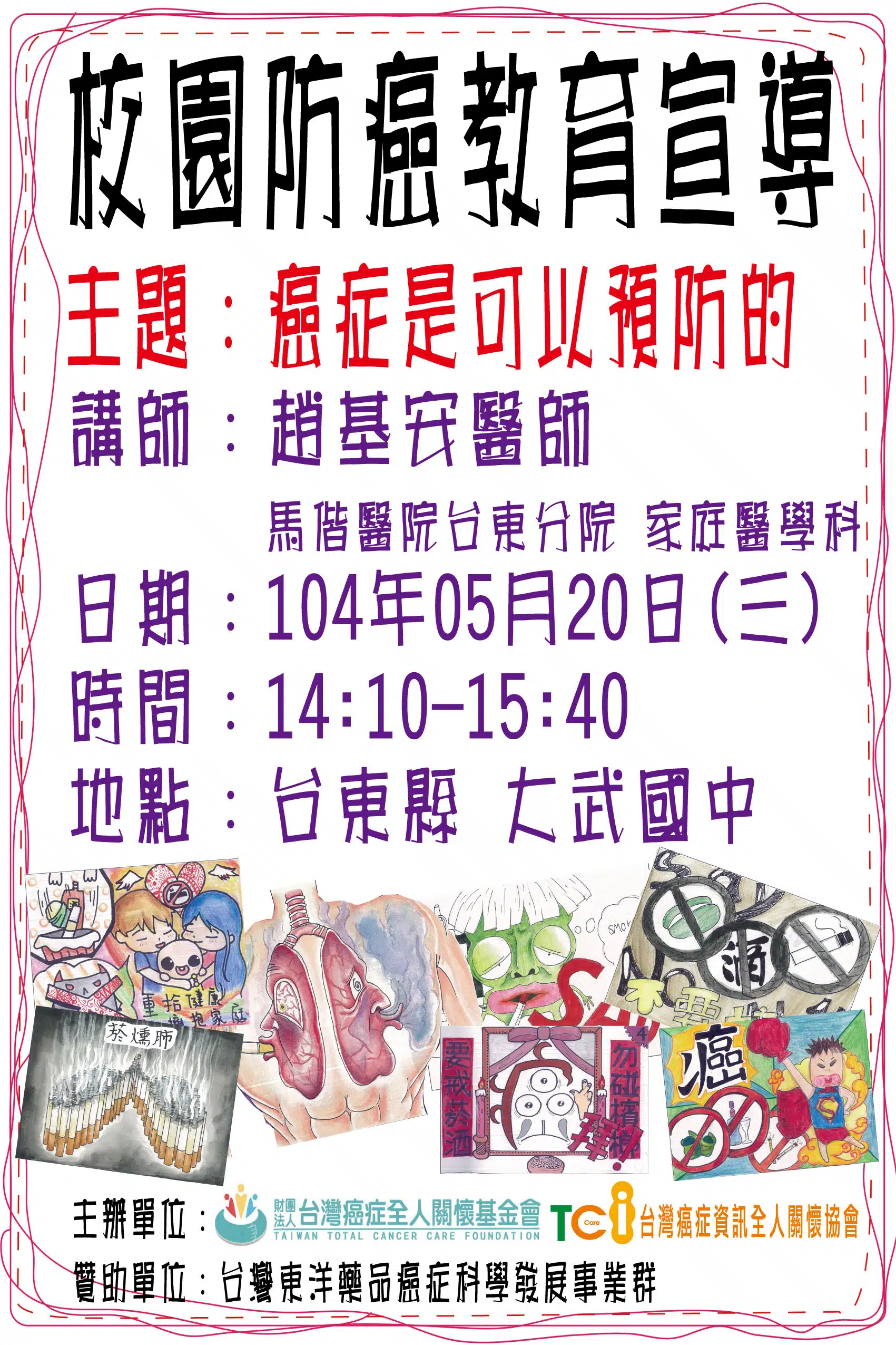 103學年度第二學期校園防癌教育宣導-台東縣大武國中