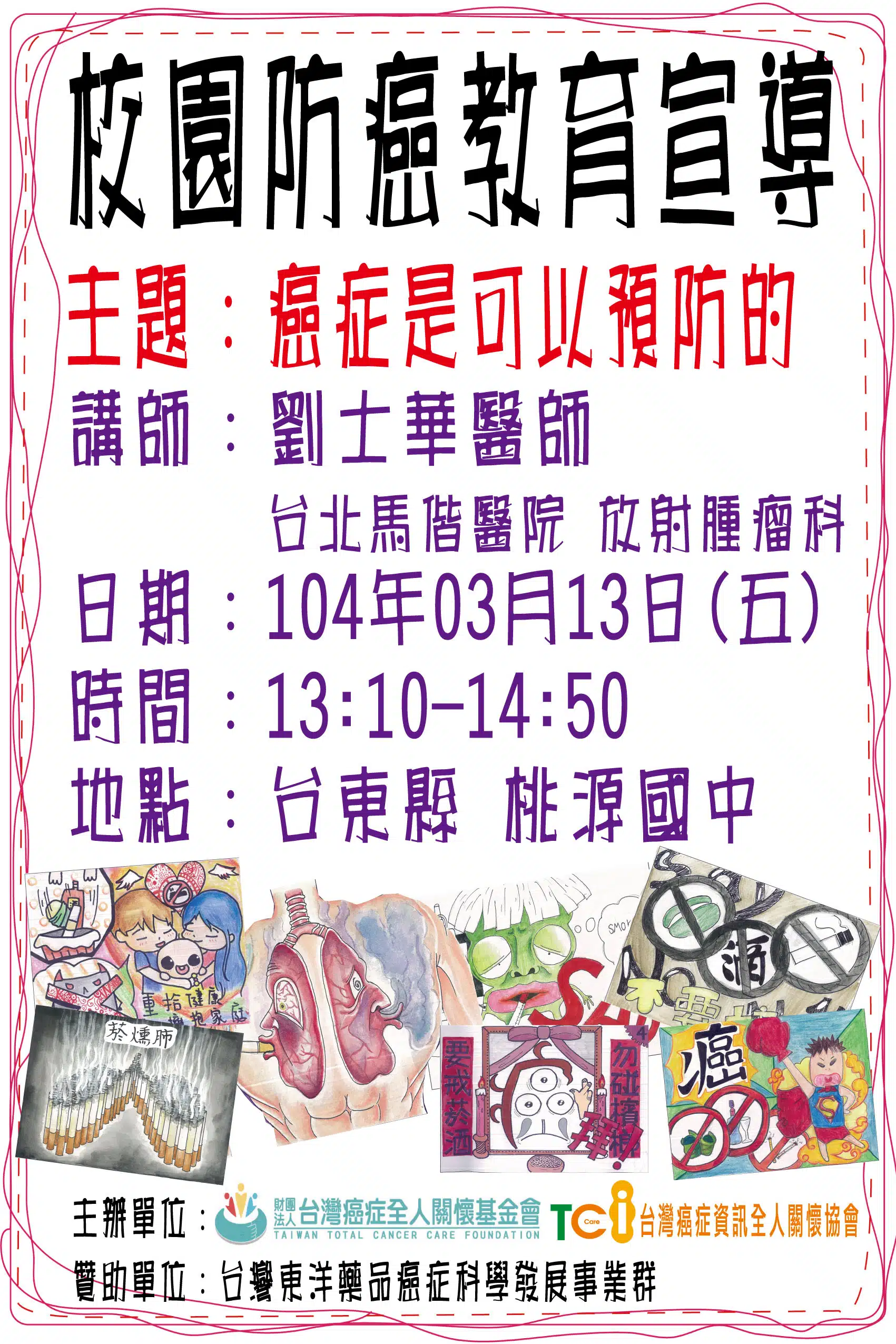 103學年度第二學期校園防癌教育宣導-台東縣桃源國中