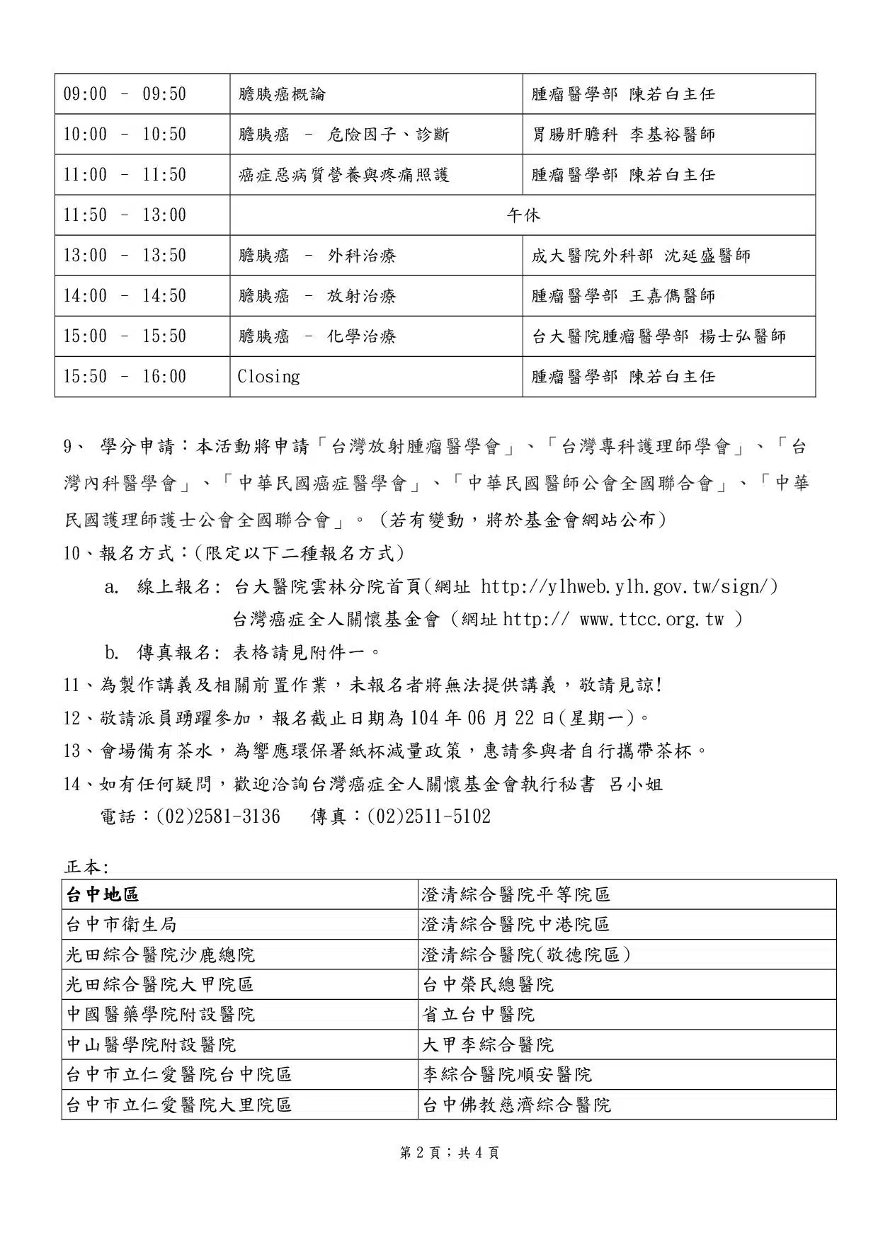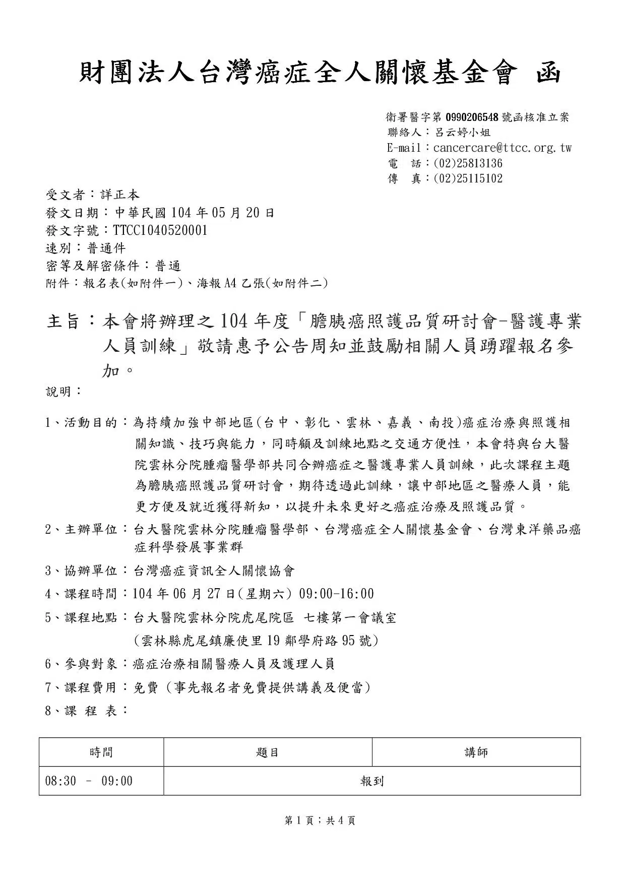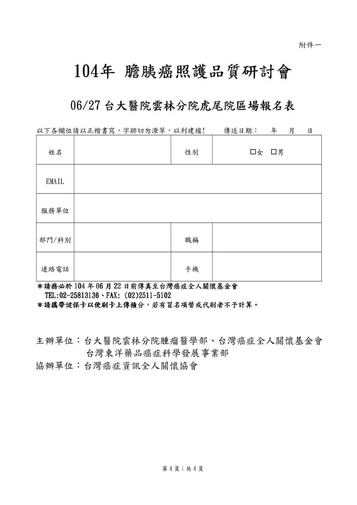 104年 膽胰癌照護品質研討會-台大醫院雲林分院虎尾院區