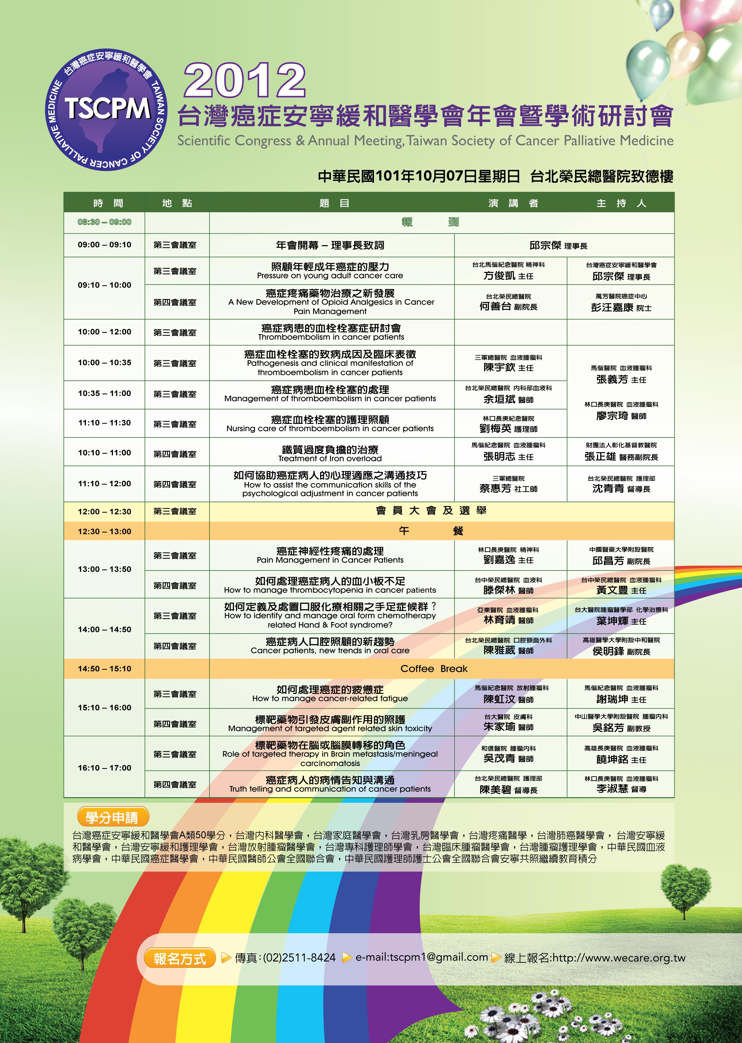 2012年 台灣癌症安寧緩和醫學會年會暨學術研討會