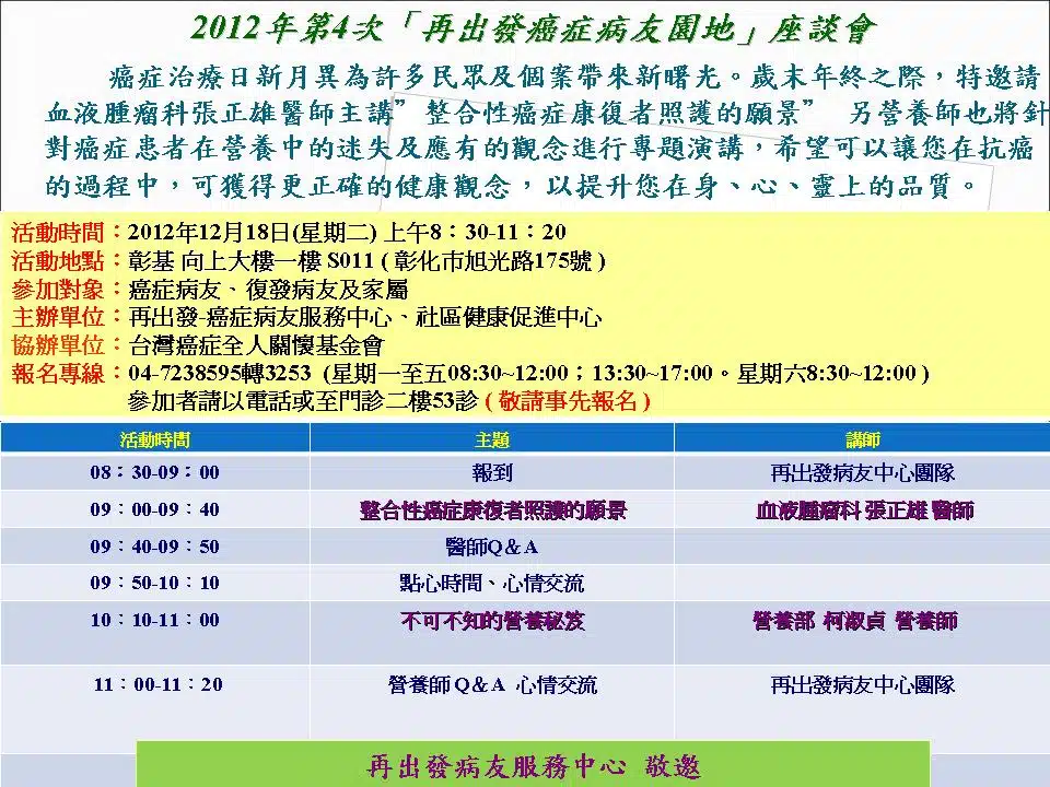 2012年「再出發 病友服務中心」溫馨傳愛系列活動