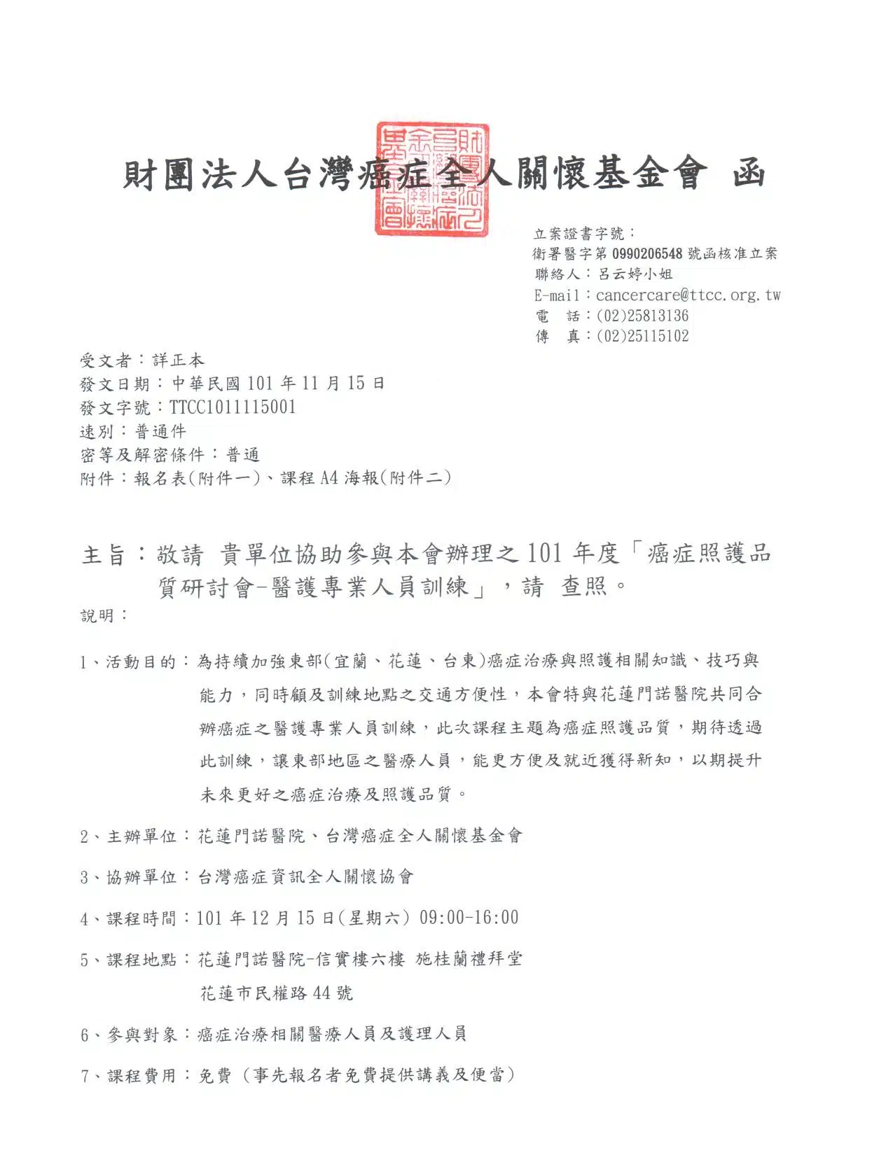 2012年「癌症照護品質研討會」-花蓮門諾醫院