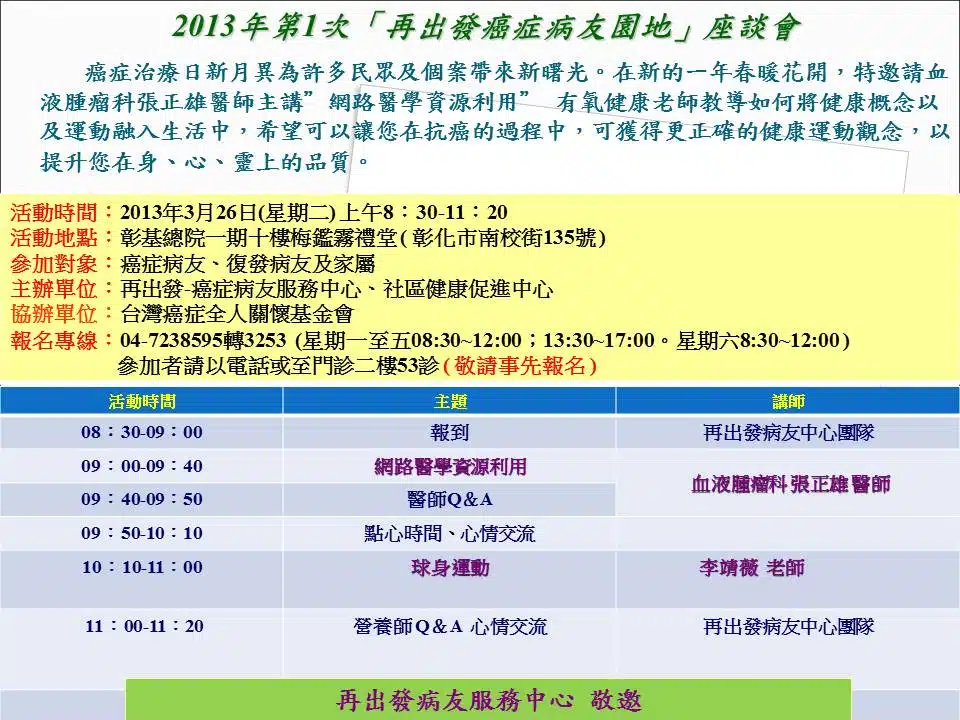 2013年 彰化基督教醫院第1次「再出發癌症病友園地」座談會