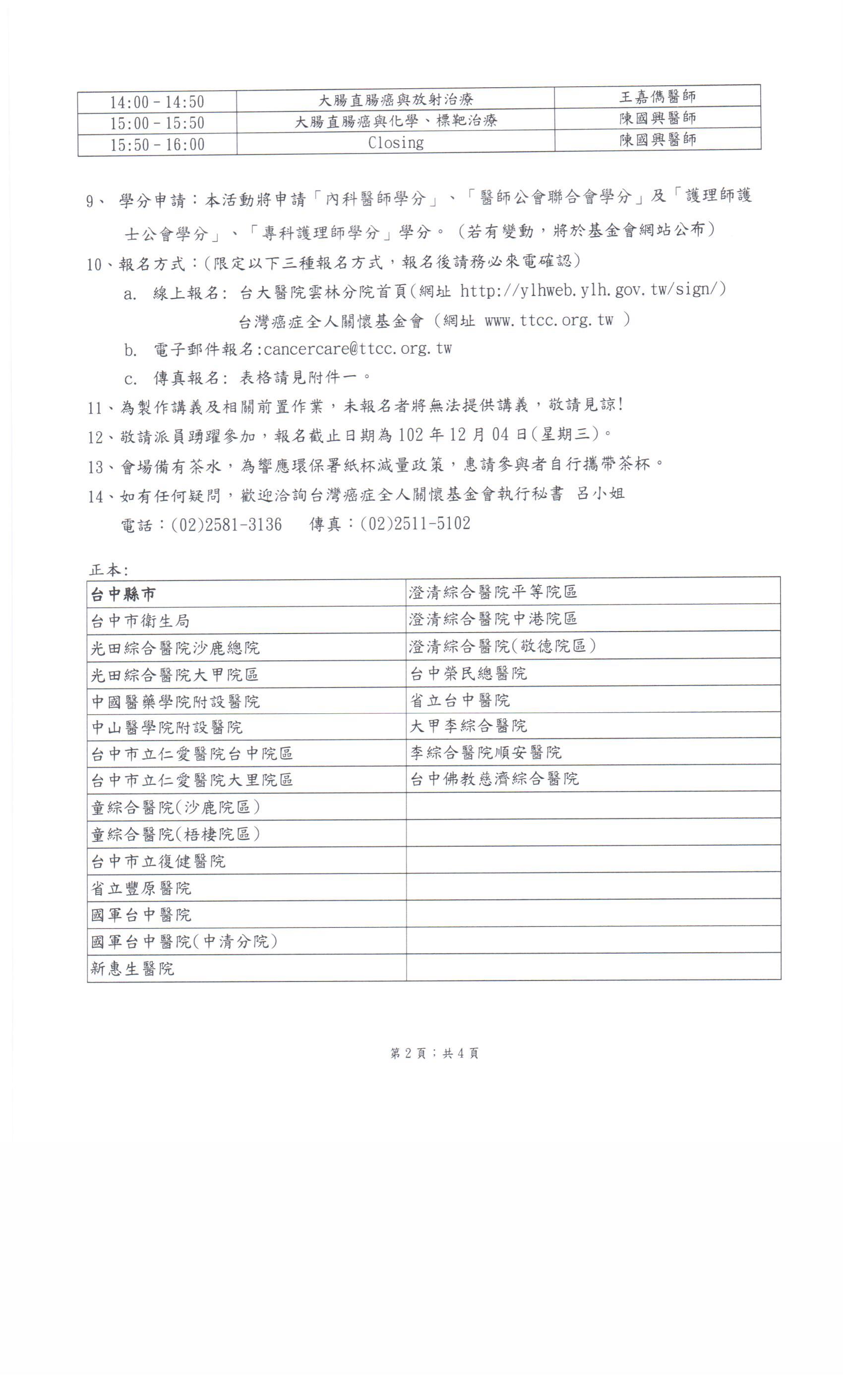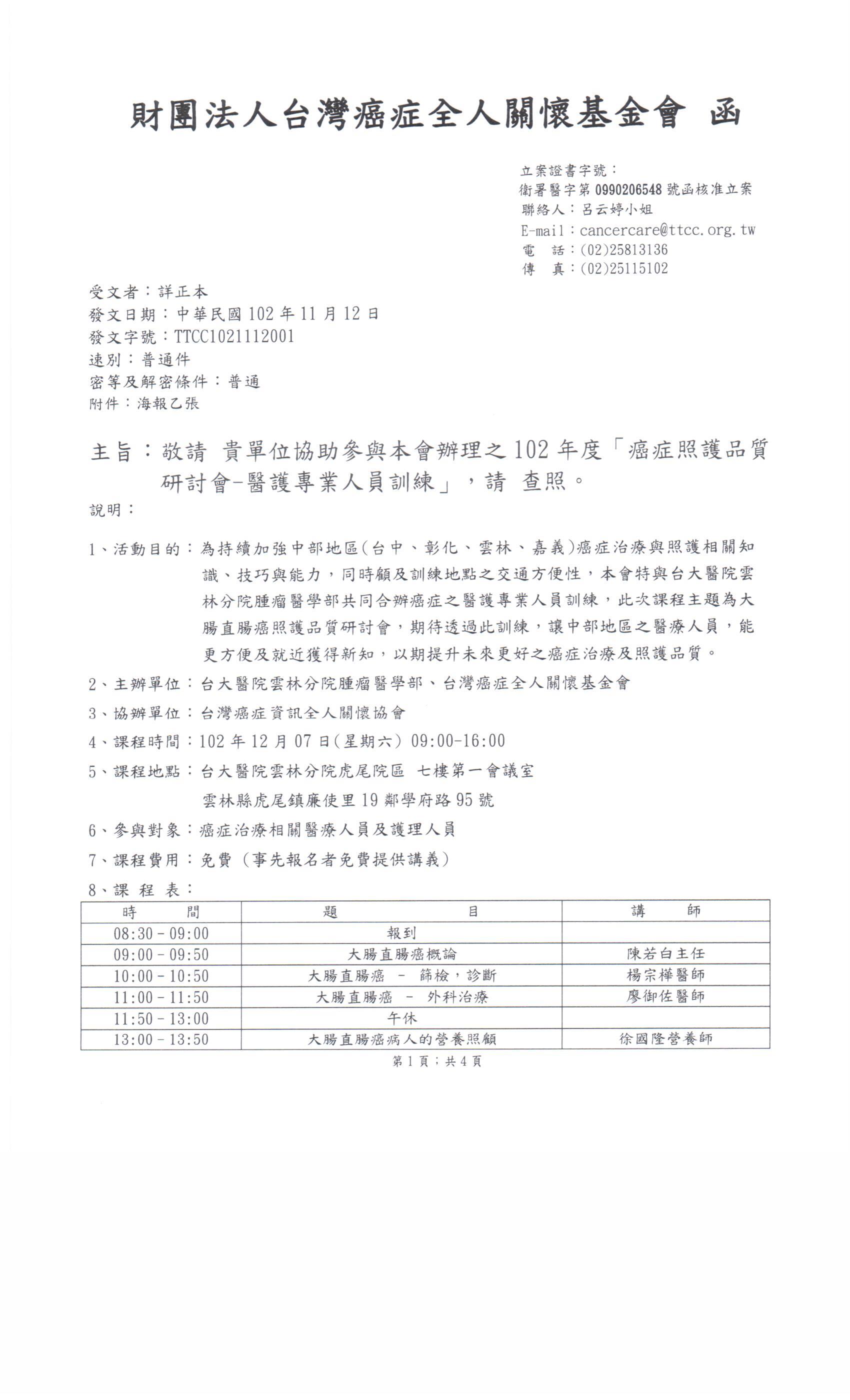 2013年「大腸直腸癌照護品質研討會」-台大雲林醫院虎尾院區