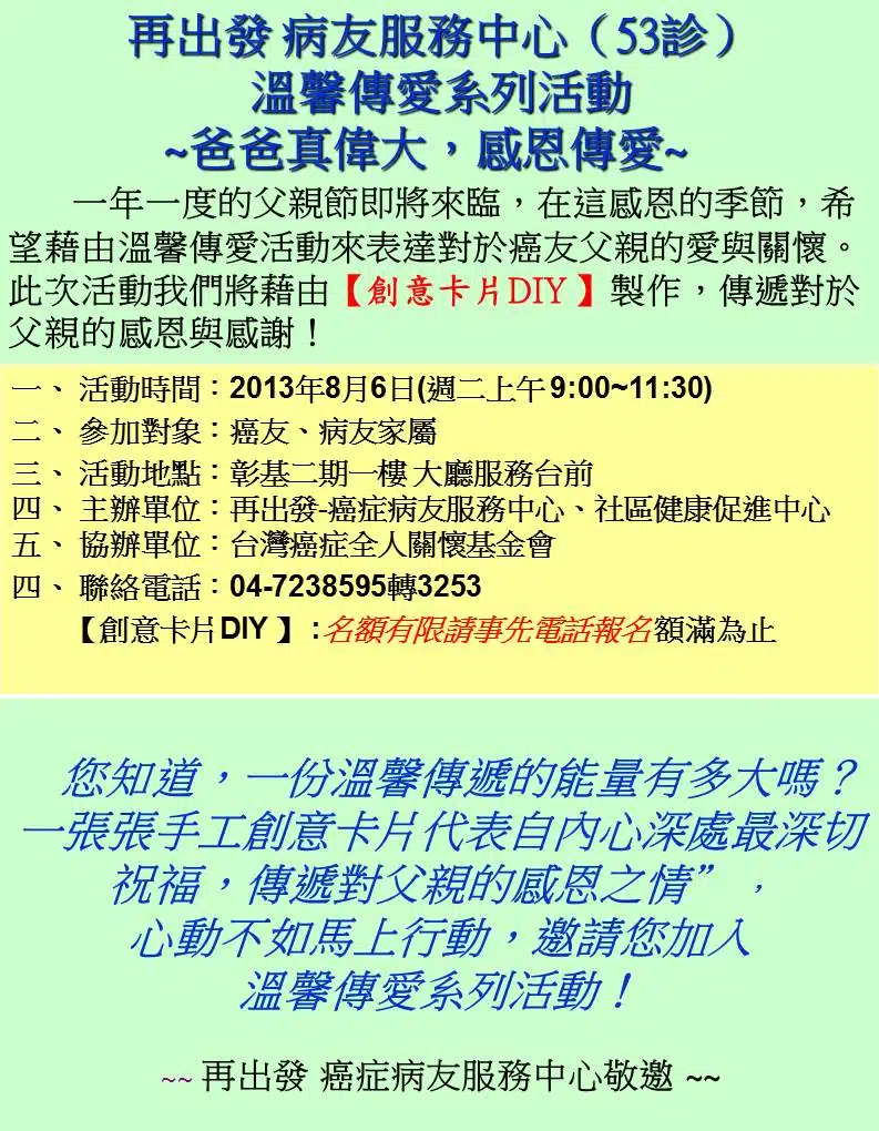 2013年 彰基再出發病友會-溫馨傳愛活動
