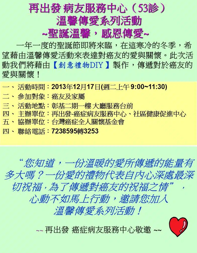 2013年 彰基再出發病友會-溫馨傳愛活動