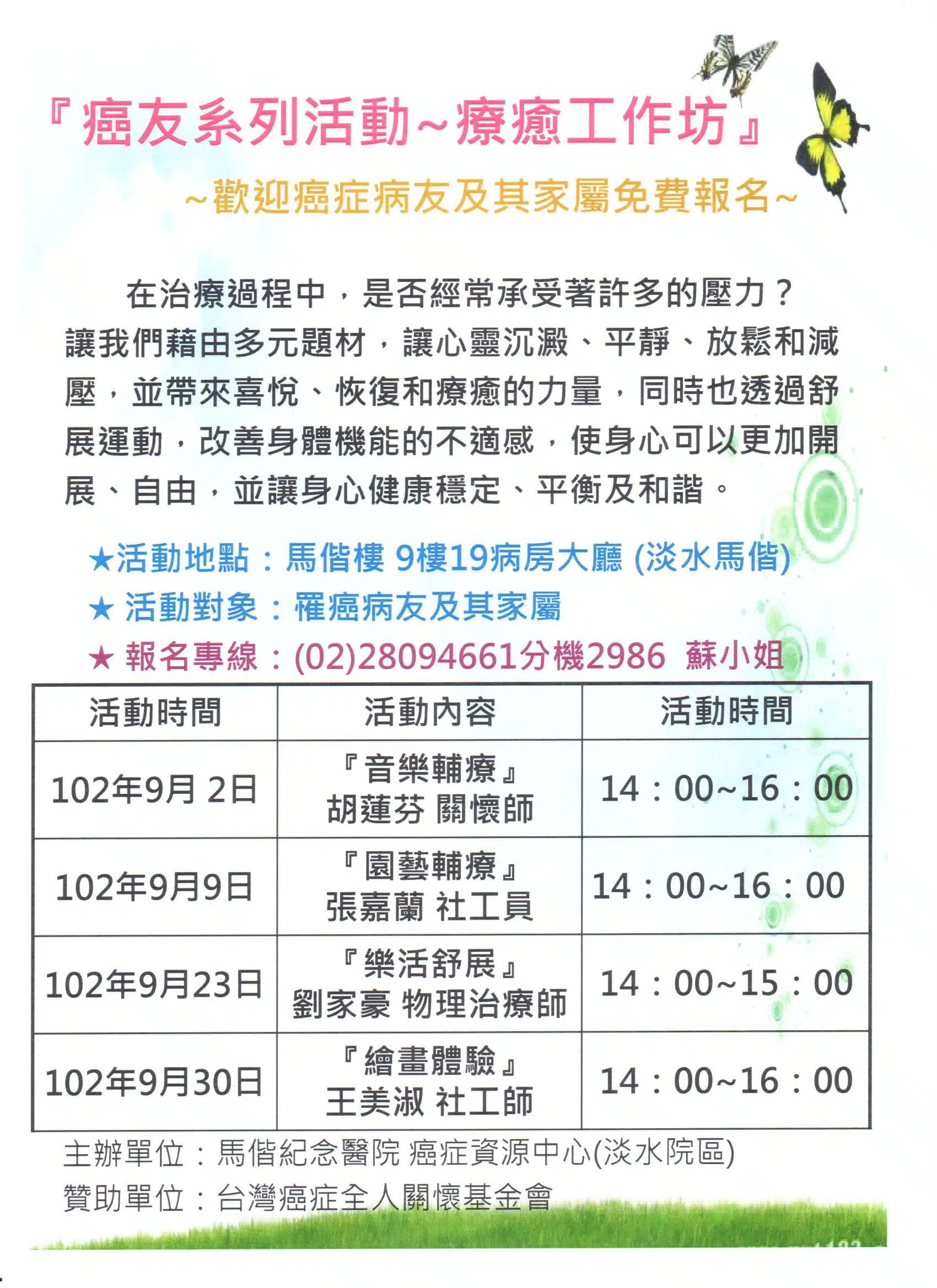 2013年 馬偕醫院淡水院區癌友系列活動~療癒工作坊