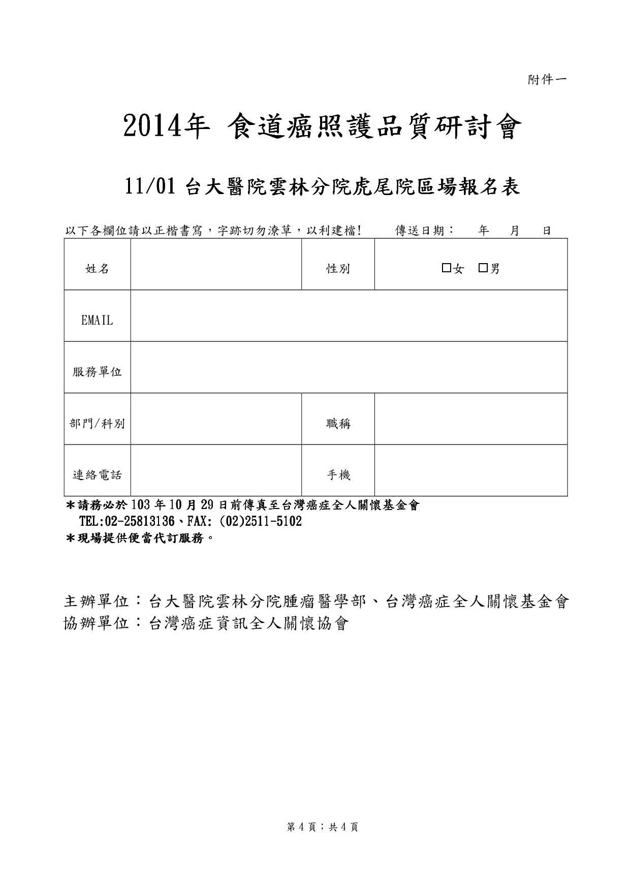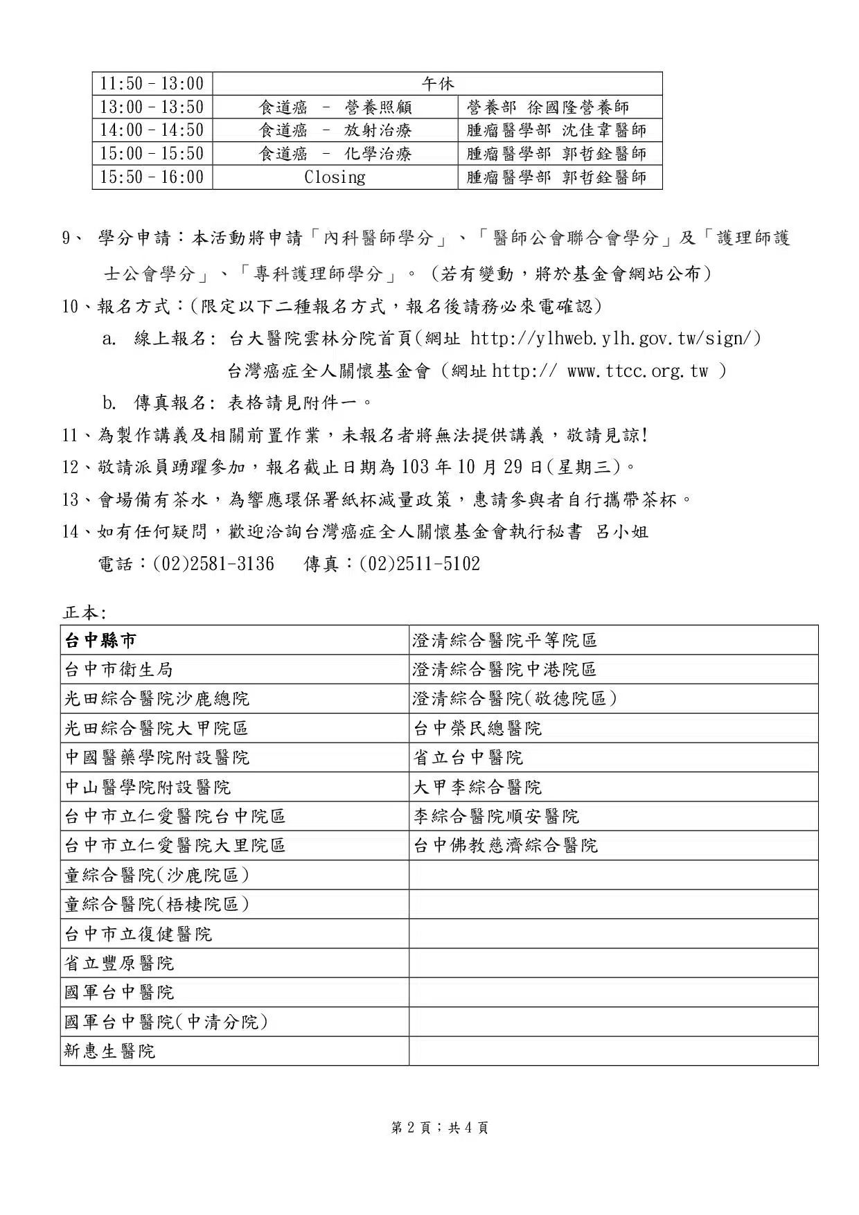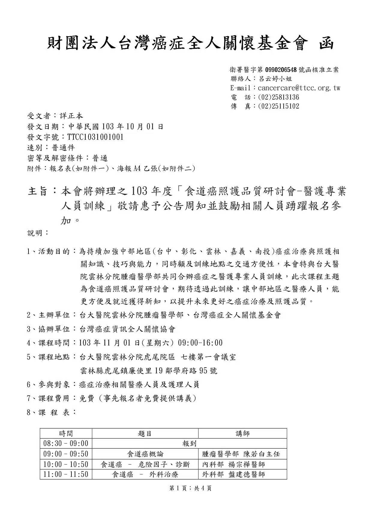 2014年「食道癌照護品質研討會」-台大醫院雲林分院虎尾院區