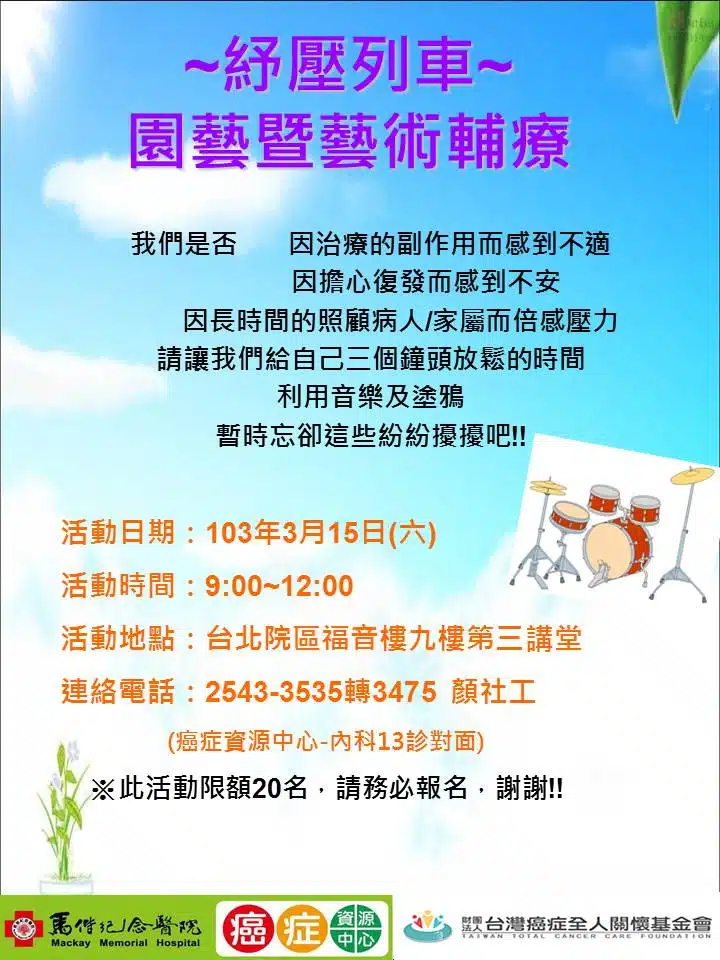 2014年 台北馬偕醫院全癌病友紓壓工作坊-園藝暨藝術輔療