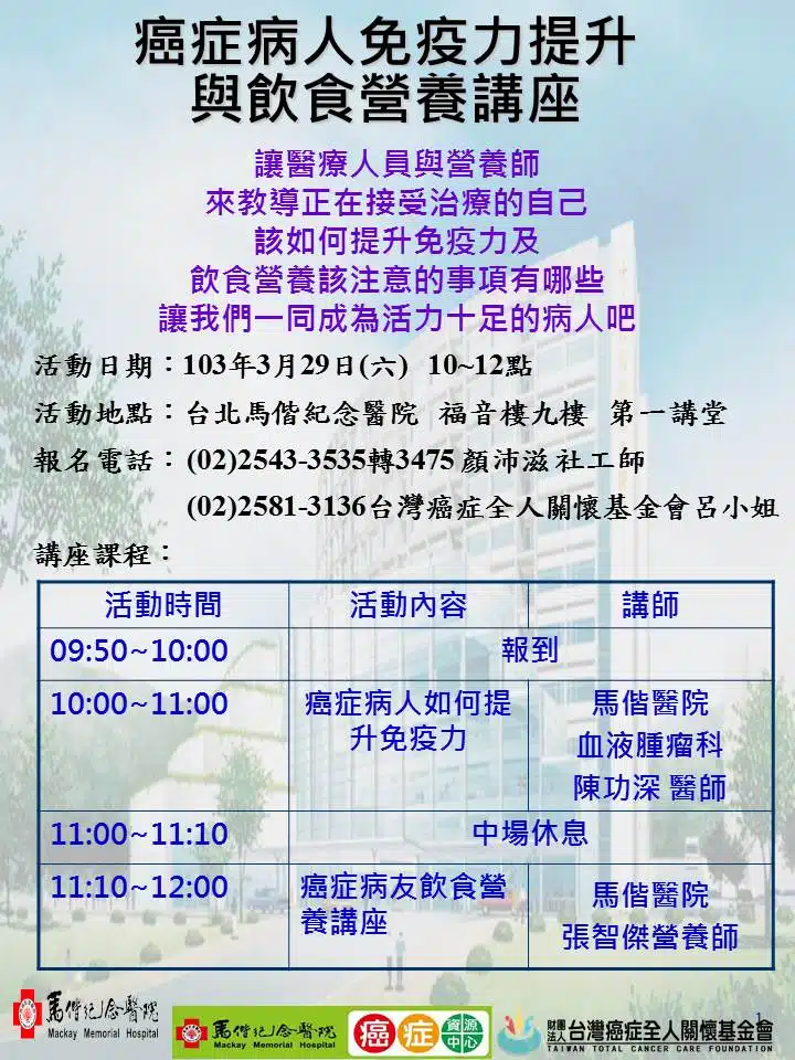2014年 台北馬偕醫院-全癌病友衛教講座(第一場;共三場)