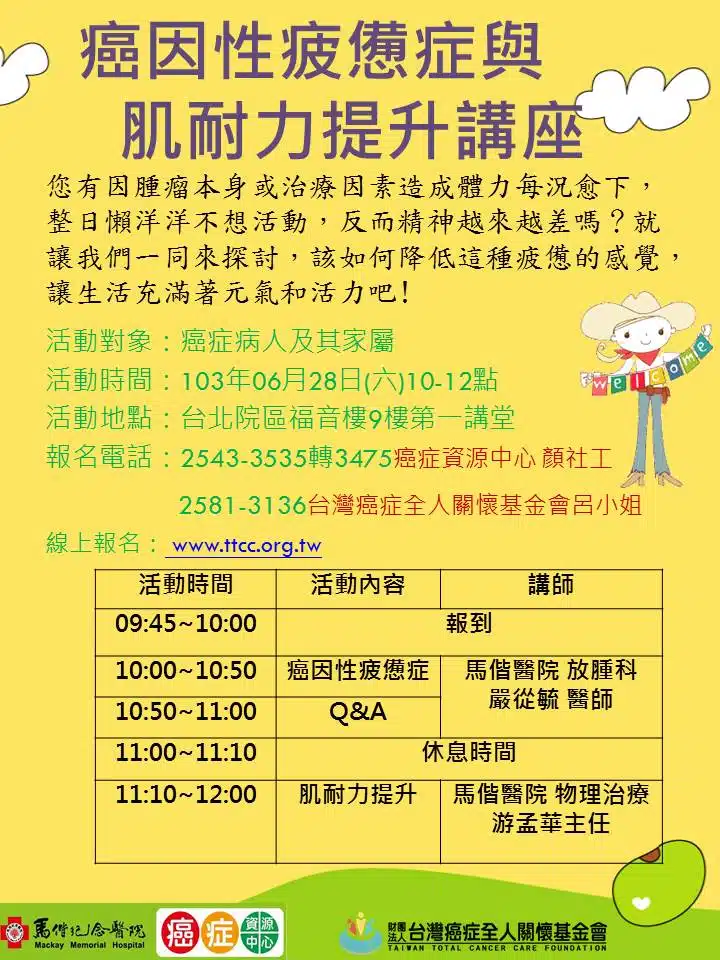 2014年 台北馬偕醫院-全癌病友衛教講座(第二場;共三場)
