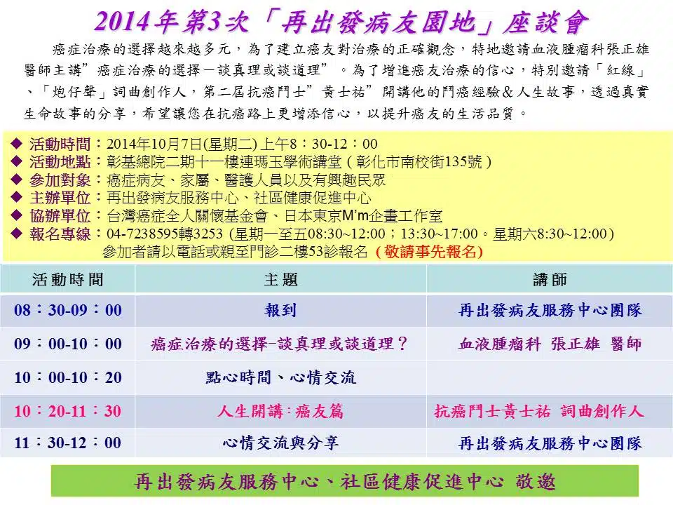 2014年 彰化基督教醫院第三次「再出發病友園地」座談會