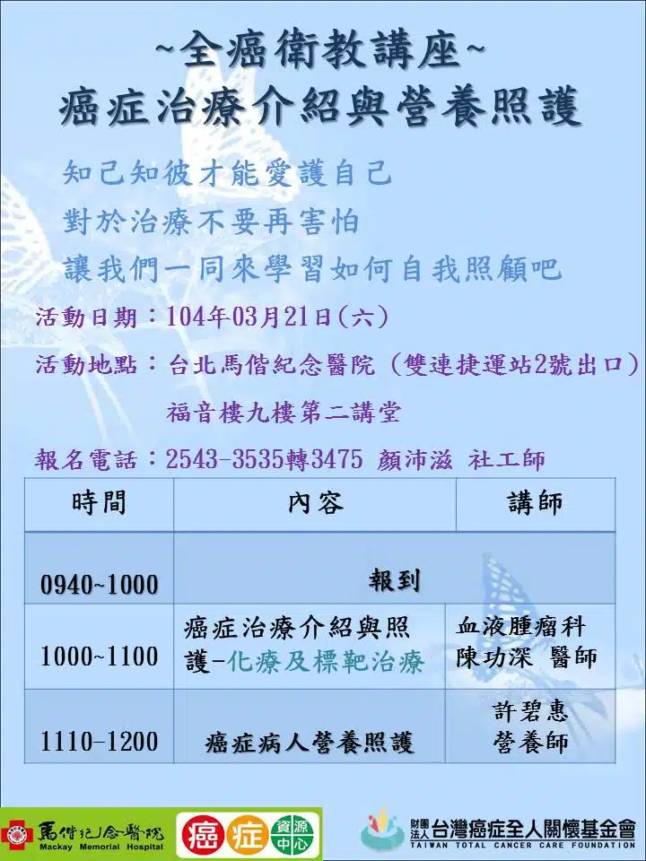 2015年 台北馬偕醫院-全癌病友衛教講座