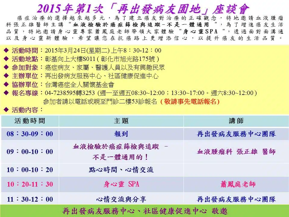 2015年 彰化基督教醫院第一次「再出發病友園地」座談會