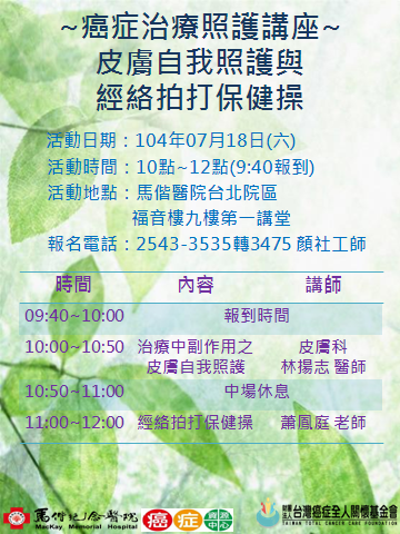 2015年 癌症治療照護講座-台北馬偕醫院
