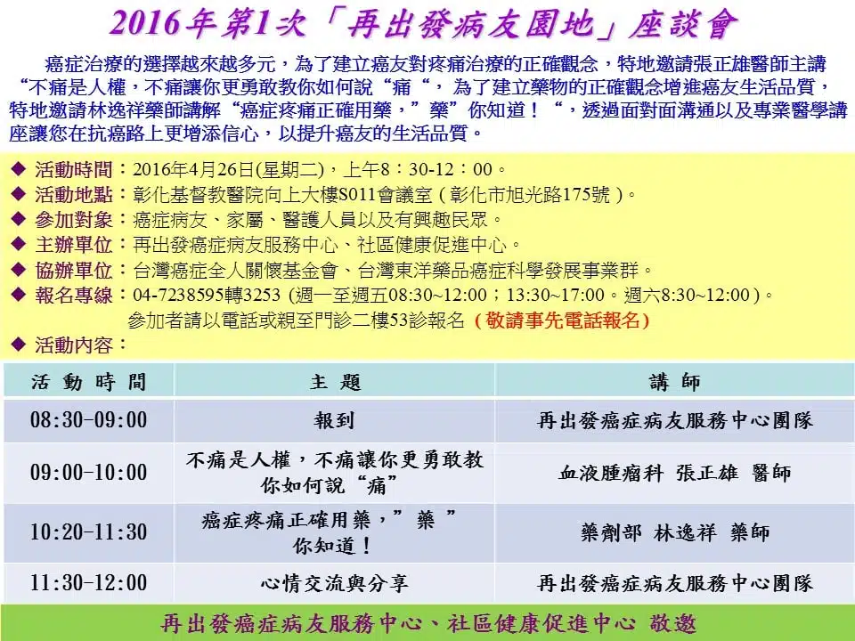 2016年 第1次「再出發病友園地」座談會-彰化基督教醫院