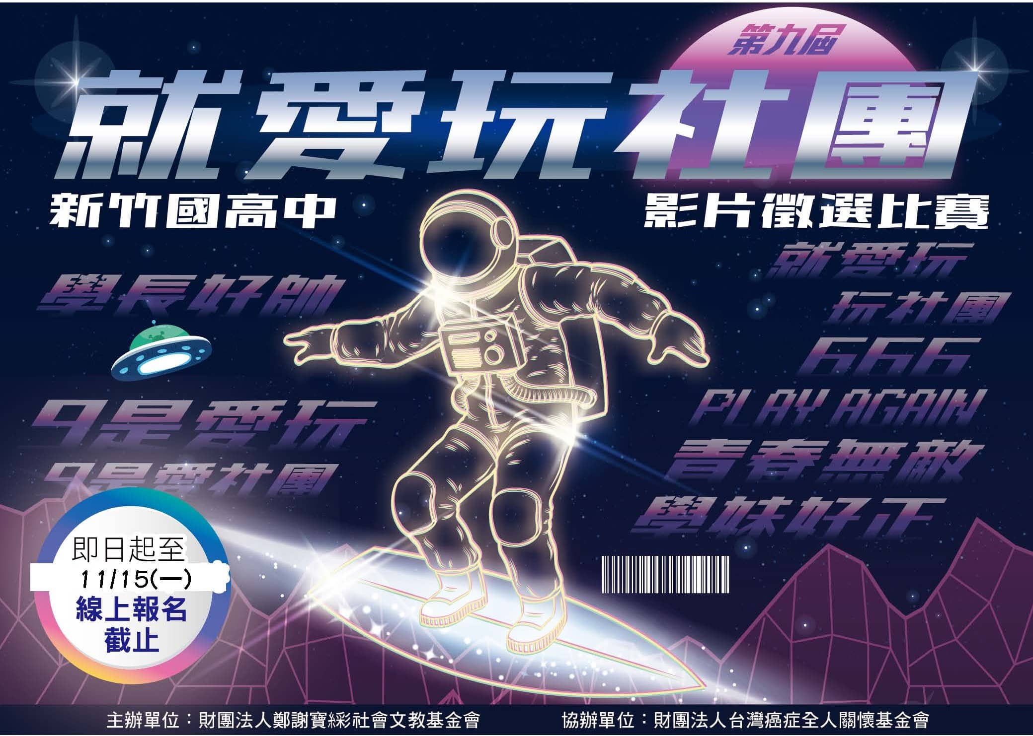 第13屆就愛玩社團 本活動為孩子們打造一個揮灑青春、展現活力與才藝的舞台,讓他們能自信地呈現平日努力練習的成果。透過與各校學子的交流互動,不僅拓展視野、增進友誼,也在過程中學習合作與自我成長。我們相信,每一次的登台都是一次蛻變的契機,歡迎大家一同見證孩子們的精彩表現,感受社團活動的多元魅力與無限可能! 新竹國、高中社團聯合發表會 活動辦法 報名申請 表演名單 注意事項及第2階段申請 13th彩排表 13th流程表 第12屆就愛玩社團 藉由社團聯合發表會活動,提供孩子們盡情揮灑青春、展現活力和才藝的舞台,不僅能展現平日練習成果,且透過與各校學子們的交流,據以增廣見聞、強化自我。 揮灑汗水、玩出熱情 # 秀出你/妳的流量密碼 活動辦法 報名申請 表演名單 注意事項及第二階段申請 流程表 歷屆就愛玩社團 2024 年 09 月 09 日 第11屆就愛玩社團-new 第11屆就愛玩社團 藉由社團聯合發表會活動,提供孩 … 2024 年 09 月 09 日 2023 年 07 月 27 日 第10屆就愛玩社團 「社團玩十年,歡樂嘉年華」 奮鬥和擔當,是青春最靚 … 2023 年 07 月 27 日 2022 年 07 月 27 日 第9屆就愛玩社團 因受COVID-19疫情影響,第9屆就愛玩社團活動 … 2022 年 07 月 27 日 2021 年 07 月 27 日 第8屆就愛玩社團 青春是夢想的領航員,在最美好的年華啟航,讓我們一起 … 2021 年 07 月 27 日 2020 年 07 月 27 日 第7屆就愛玩社團 青春的本錢就是把握現在,現在的熱血與瘋狂是為了未來 … 2020 年 07 月 27 日 2019 年 07 月 27 日 第6屆就愛玩社團 青春不是用來荒廢的,青春是用來拼搏的,喜歡看你們簡 … 2019 年 07 月 27 日