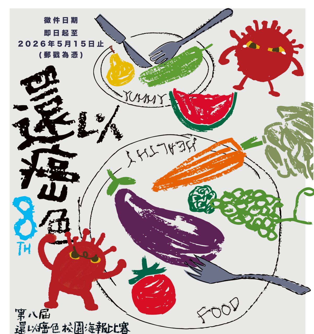 第八屆還以「癌」色校園海報比賽 防癌教育的意義防癌教育是一項未雨綢繆的任務,也是教化與培育的重要環節。我們的努力• 向下扎根:持續推動偏遠地區中學生的健康生活教育。• 廣泛推廣:針對學生與民眾,積極宣導癌症預防與早期篩檢的重要性。創意參與透過輕鬆親切的漫畫繪製與劇情發想,引導學子們主動探索、學習相關防癌知識,讓教育不僅是知識的傳遞,更是生活態度的培養。 活動辦法 列印報名表 得獎名單 頒獎典禮報名表 第七屆還以「癌」色校園海報比賽 防癌教育是一種未雨綢繆的任務;教育即教化茹育。我們不斷地向下紮根,進行偏遠地區中學生的健康生活教育;我們亦針對學生及民眾於癌症預防及早期篩檢方面持續推廣。因此,藉由輕鬆親切的漫畫繪製與劇情的發想,善誘學子們自動自發地搜尋相關資訊。 活動辦法 列印報名表 得獎名單 頒獎典禮報名表 得獎作品 得獎作品巡迴展覽 歷屆還以「癌」色校園海報比賽 2026 年 01 月 15 日 第八屆「還以癌色」校園海報比賽 活動辦法 第八屆「還以癌色」校園海報比賽活動辦法 目錄 Ad … 2026 年 01 月 15 日 2026 年 01 月 15 日 第八屆「還以癌色」校園海報比賽 報名表 2026 年 01 月 15 日 2025 年 11 月 16 日 第七屆「還以癌色」校園海報作品展 用色彩說故事,讓創意為癌症教育發聲!由台灣癌症全人 … 2025 年 11 月 16 日 2022 年 07 月 11 日 第六屆「還以癌色」校園漫畫海報比賽 得獎名單出爐囉!!! 目錄 Add a header to begin … 2022 年 07 月 11 日 2022 年 01 月 07 日 索取第六屆「還以癌色」校園漫畫海報比賽 圖畫紙 [wpforms id=”11603& … 2022 年 01 月 07 日 2022 年 01 月 05 日 第六屆”還以癌色”校園漫畫海報比賽~~徵件中 111年01月18日更新通知:由於反應熱烈,專用圖 … 2022 年 01 月 05 日 2020 年 08 月 28 日 5TH還以癌色頒獎典禮活動遊戲 請先由此登入,再上傳您的照片。 2020 年 08 月 28 日 2020 年 08 月 10 日 第五屆還以”癌”色校園漫畫比賽 得獎名單出爐囉!!! 第五屆「還以癌色」國中校園漫畫比賽頒獎典禮暨得獎作 … 2020 年 08 月 10 日 1 2 3 ... 5 下一頁 »