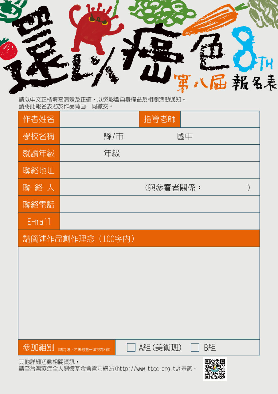 為方便作品收件與整理,請所有參賽者:下載並填寫報名表。完整填寫個人資料(姓名、學校、組別、聯絡方式)。將報名表貼於作品背面,與作品一同寄送。⚠️ 注意:未貼報名表或資料不完整者,將不列入評選。📥 點此下載報名表
